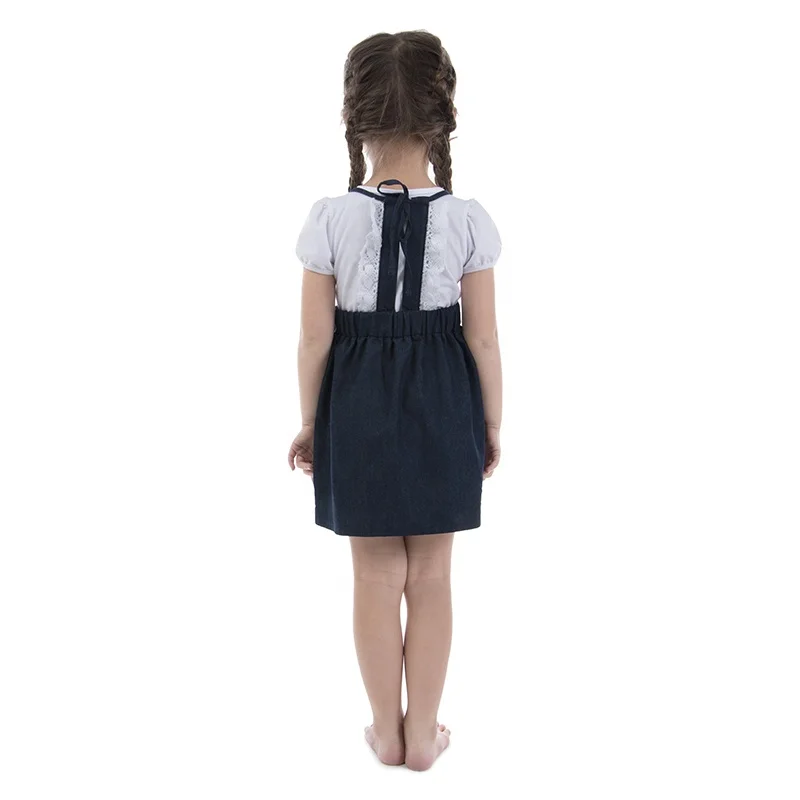 Wholesale Boutique Kids Clothes Splid Color Girls Denim Shirt Lacing Princess Dresses for Baby Girls Summer Dress